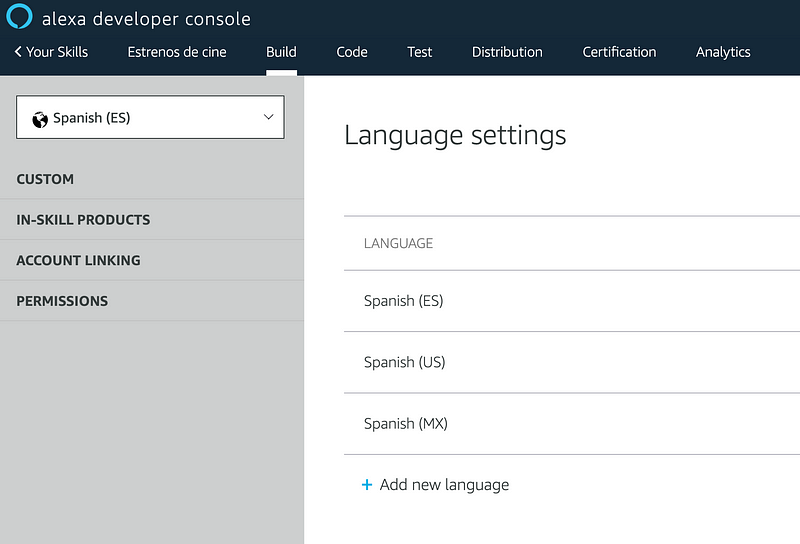 En mi caso, para la skill de Estrenos de cine, me llevó apenas unas horas preparar el backend y luego crear los modelos de interacción para español de México y español de Estados Unidos. Además la API que uso me ofrece la posibilidad de indicarle tanto la región como el idioma para los resultados.