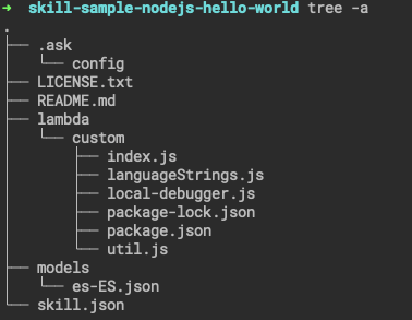 Como decía antes, yo partí de una plantilla básica de skill que te facilita usar ASK CLI con el comando new.