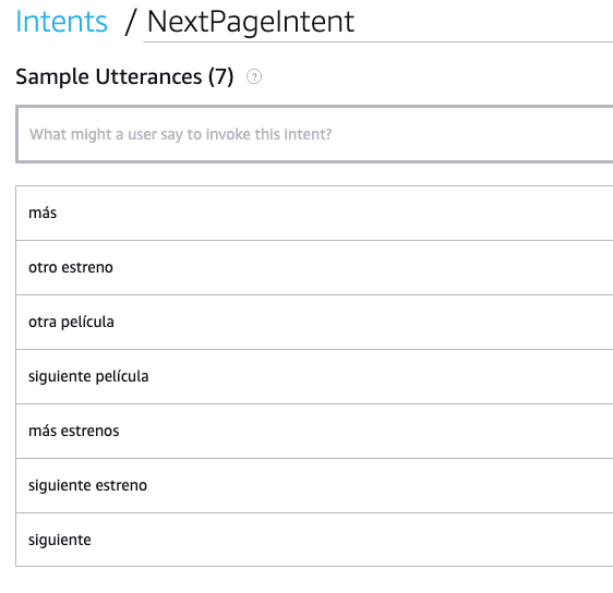A modo experimento quería añadir la capacidad de navegación por voz a la skill. Con navegación me refiero en este caso a pasar de página diciendo a Alexa: “Alexa, siguiente estreno”, “Alexa, siguiente”, etc