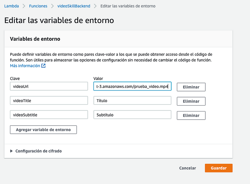 De todas formas ese vídeo vamos a poder “cambiarlo en caliente”, sin desplegar código, porque lo he creado usando variables de entorno en AWS Lambda. Así como el vídeo, podrás configurar otros dos campos que son obligatorios: título y subtítulo.